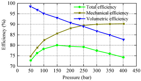 where is the efficiency of hydro-mechanical transmission, is the mechanical efficiency of the hydraulic components; is the total efficiency of the hydraulic system. The efficiency of hydraulic components is varied under different test environments, Figure 7 gives the relevant efficiency curves of the SAUER_DANFOSS 90-series hydraulic components measured experimentally at different pressures.