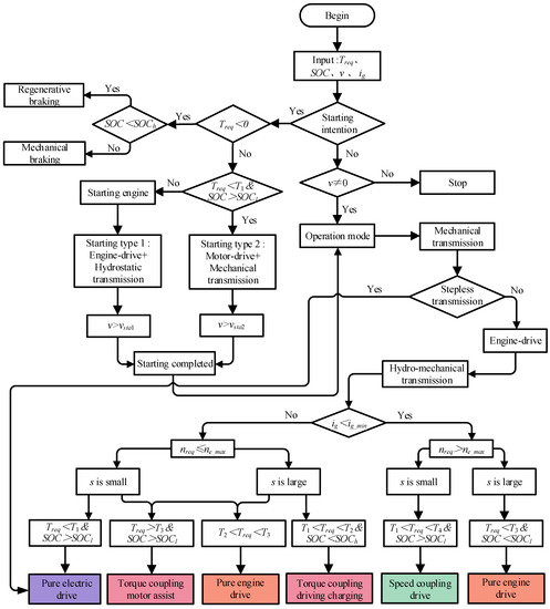 A generally applicable rule-based pattern recognition strategy, as shown in Figure 10, was applied to classify the tractor in each power range to achieve the optimal performance of a tractor equipped with MEH-PS [33].