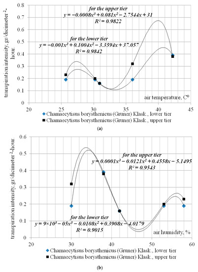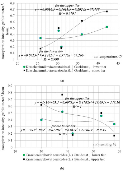 3.2. Analysis of the Correlation of the Intensity of Transpiration of Phytomeliorants Depending on Temperature and Humidity