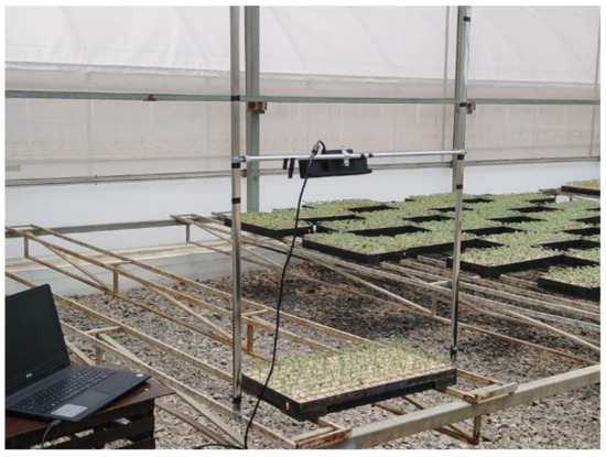 There have been multiple approaches for seedling monitoring; Among the most used, we can find phenotyping based on laser scanning, root growth analysis, and plant growth analysis. Two-dimensional/three-dimensional data are used in controlled or uncontrolled conditions to obtain morphological characteristics spatio-temporally, with one or several viewing angles of the plant, and with one or several acquisition systems [44,45,46,47].