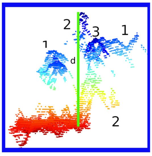 The second stage entails the extraction of characteristics from the point clouds. For this task, Paturkar et al. [64] divide the approaches into three groups, including individual plant trait measurements, whole-plant measurements, and canopy-based measurements. Nguyen et al. [80] present a methodology for extracting the plant height, the number of leaves, the leaf size, and the internode distances using point clouds. First, they use Euclidean clustering to segment the plant into smaller parts. Then, they use eigenvalues to group the seedling features to extract the features. This work proposed Algorithm 1 to extract the height seedling and mean shift clustering to determine development.