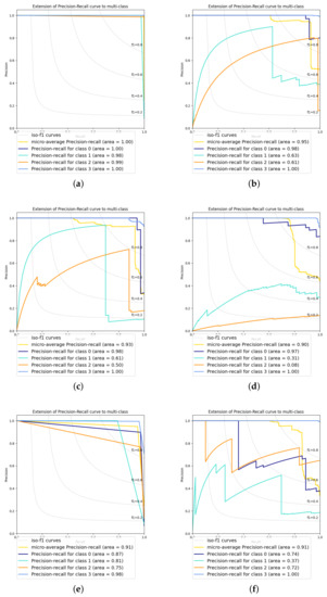 In this work, we evaluated a multi-class SVM as one-vs-rest classification. We evaluated three different kernels: Lineal [90], RBF exp [91] and polynomial [92], where d is specified by parameter and r by , and must be greater than 0.