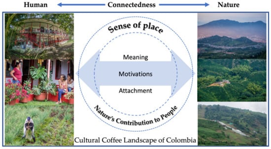 Sense of place is defined as the meanings and attachments that people possess in a territory [12,16,17] (Figure 9). Our findings were able to identify specific NCP underpinning the diversity meanings and the attachment of Pereira’s farmers to the farmlands in the CCLC.