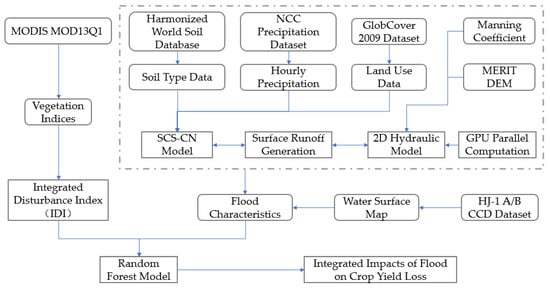 - Chen, H.; Liang, Z.; Liu, Y.; Liang, Q.; Xie, S. Integrated remote sensing imagery and two-dimensional hydraulic modeling approach for impact evaluation of flood on crop yields. J. Hydrol. 2017, 553, 262–275. [Google Scholar] [CrossRef] [Green Version]