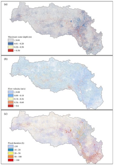 - Flood Simulation. The spatial surface characteristics and precipitation were input into the coupled SCS-CN and 2D hydraulic model, and the flood process was simulated for MLYRB with GPU parallel computing.