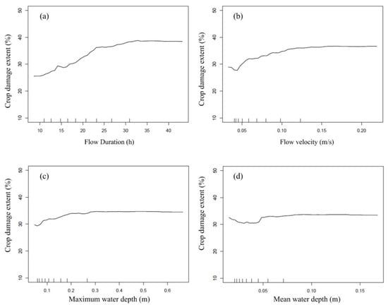 - The integrated impacts of flood on crop yield loss. Random forest was adopted to predict the crop damage extent with different flood characteristics.