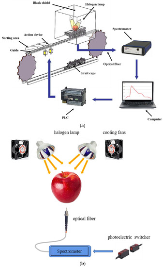- Fan, S.; Wang, Q.; Tian, X.; Yang, G.; Xia, Y.; Li, J.; Huang, W. Non-destructive evaluation of soluble solids content of apples using a developed portable Vis/NIR device. Biosyst. Eng. 2020, 193, 138–148. [Google Scholar] [CrossRef]