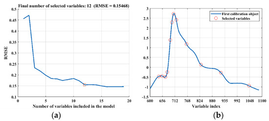 In this study, the successive projection algorithm (SPA) was used for characteristic wavelength extraction. The basic idea was to use the projection analysis of the vector to find the variable group containing the minimum redundant information, and to achieve the minimum collinearity between the variables [28].
