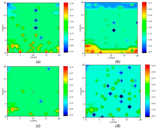 (a) Uniformity of coverage at F1T1 level; (b) Uniformity of coverage at F1T2 level; (c) Uniformity of coverage at F1T3 level; (d) Uniformity of coverage at F1T4 level.