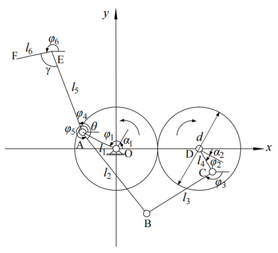 - Sun, L.; Shen, J.; Zhou, Y.; Ye, Z.; Yu, G.; Wu, C. Design of non-circular gear linkage combination driving type vegetable pot seedling transplanting mechanism. Trans. CSAE 2019, 35, 26–33. [Google Scholar]