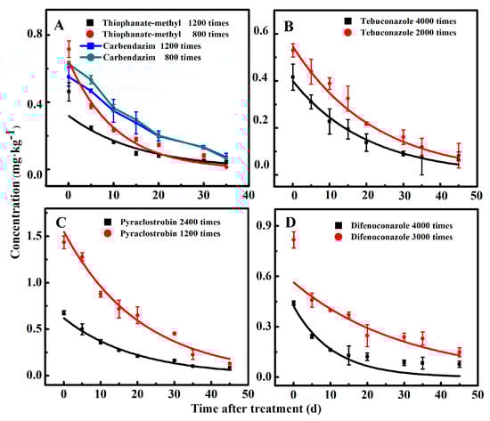 3.3. Dissipation Behaviors of the Fungicides in Pears