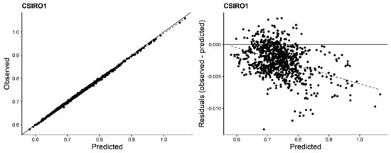 All statistical analyses were performed using R software (R Core Team, 2020; version 4.0.3, R Foundation for Statistical Computing, Vienna, Austria). Descriptive statistics were performed using the psych package and plotted using the ggplot2 and cowplot packages in R. We selected R2 to assess the precision and root mean square error of prediction (RMSEP) to determine the accuracy. The mean square error of prediction (MSEP) was partitioned into mean, slope, and random biases, and their significance was determined [11]. The concordance correlation coefficient (CCC) was also used to assess precision and accuracy [12].