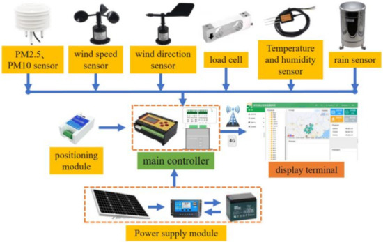 Therefore, it is of great significance to study the monitoring of seasonal exposed farmland dust to protect the environment and cultivated land. It is mainly affected by surface straw coverage, wind speed, and soil humidity. Experts at home and abroad have performed a series of studies on farmland dust monitoring, mainly focusing on the spatial and temporal distribution and variation characteristics of dust emissions, using research methods such as analysis, simulation, estimation, source analysis, etc., to explore farming methods, environmental changes, soil types, land surface, and the influence of factors such as coverage degree on farmland dust release. In terms of the contribution of soil wind erosion to the concentration of atmospheric particulates, Lin conducted a study on farmland dust emissions from the time dimension [10]. The results showed that bare farmland had the most significant impact on ambient air quality in spring and verified it using the CMB source analysis model. In terms of measurement models, atmospheric diffusion models are currently used to estimate the emission levels of particulate pollutants in the atmosphere in areas with insufficient monitoring conditions. Pan used multiple linear regression (REC) and fitting analysis to evaluate air quality [11]. Using the CAMS model, Sara Karamiet et al. studied the dominant weather model of dust storms in the Persian Gulf [12]. Sun studied the spatial pattern of the dust emission process of farmland soil wind erosion under various modes, determined the impact of dust emission, and formulated effective protection measures [13]. In addition, many scholars have also carried out research on the relationship between soil dust release and meteorological factors and soil factors. Cavatina in Mexico found that PM10 released in farmland was negatively correlated with relative humidity in the air [14], and Aimar in Argentina also showed that soil The release of wind-eroded PM10 is negatively correlated with soil moisture [15]. Zhao used a wind tunnel to study the relationship between soil moisture content and farmland soil wind erosion and found that soil moisture content is a critical factor in inhibiting wind erosion [16].