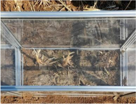 The straw burial mode is that the straw crusher crushes the corn straw, the surface soil is mixed with the straw by the rotary cultivator, and the mixed burial depth is about 15 cm. The mode of stubble + straw mulching is to crush and cover the ground after corn harvest, and the stubble height is about 20 cm. The straw mulching mode is to use the straw returning to the machine to crush the surface straw after corn harvest so that the straw residue covers the surface without tillage. The straw coverage rate is between 40% and 60%. The traditional tillage modes are the plow-plow and rotary tiller. After the mechanical operation, the surface soil is finely crushed and not covered with straw.