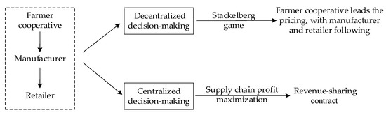32]. Therefore, how to formulate an optimal pricing strategy in the agricultural product supply chain is the core issue to be studied in this paper.
