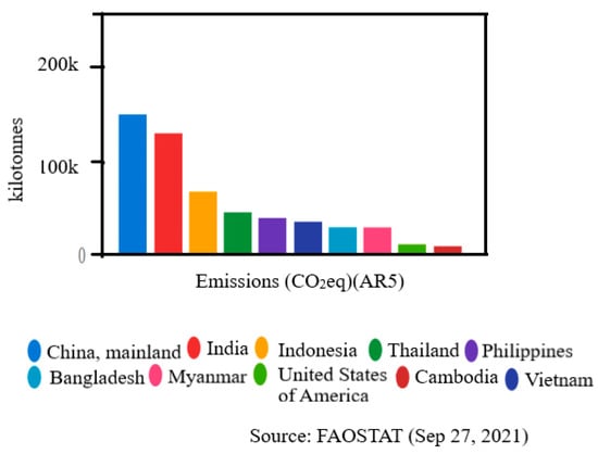 - FAOSTAT. Emissions Totals. 2021. Available online: https://www.fao.org/faostat/en/#data/GT/visualize (accessed on 1 September 2021).