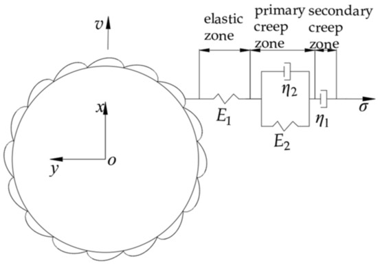 The seedbed soil was loose before compaction. When working with the roller, the stress–strain relationship changes with time. There is a certain rheological property for the sticky soil in the rice–wheat rotation area under pressure, and its variation curve is similar to that of the Bergs model curve. Taking the paddy soil as the research object, the interaction models between the paddy soil and the roller were established, as shown in Figure 8.