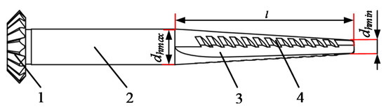 Equations (22)–(25) jointly yield the constraints on the maximum and minimum end diameters of the spindle head as follows: