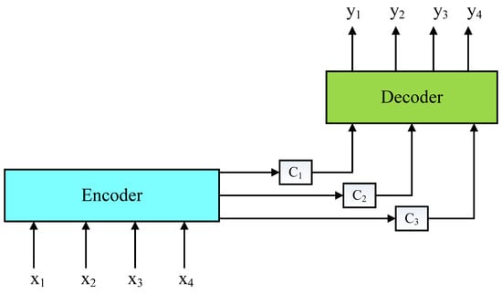 The sequence-to-sequence model has two parts: encoder and decoder. In the traditional Seq2Seq model, the encoder and decoder exchange data through an intermediate semantic vector, and the length of the semantic vector is fixed. When a long sequence of text is input into the encoder, with the encoding and decoding process, the feature information behind the text sequence will cover the feature information before it. We used an attention mechanism between the encoder and the decoder; the feature information of keywords can be retained in the input feature information of the decoder to the input sequence of the decoder, such as c2 in Figure 6. The training model selectively learns these outputs and finally associates them with the corresponding output sequence [25]. The structure diagram of the attention mechanism based on Seq2Seq is as follows: