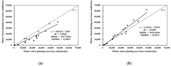 - Pan, Y.Z.; Li, L.; Zhang, J.S.; Liang, S.L.; Zhu, X.F.; Sulla-Menashe, D. Winter wheat area estimation from MODIS-EVI time series data using the Crop Proportion Phenology Index. Remote Sens. Environ. 2012, 119, 232–242. [Google Scholar] [CrossRef]