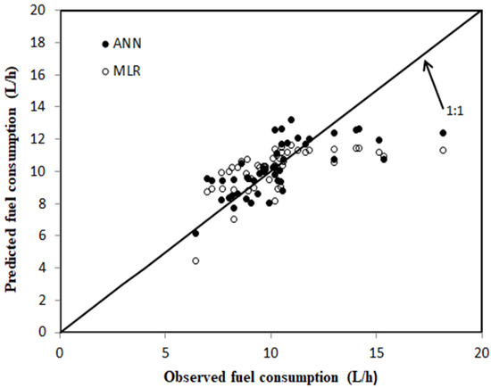 - Ajdadi, F.; Abbaspour-Gilandeh, Y. Artificial neural network and stepwise multiple range regression methods for prediction of tractor fuel consumption. Measurement 2011, 44, 2104–2111. [Google Scholar] [CrossRef]