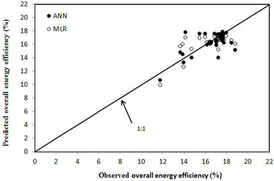 3.2. Evaluation of Investigated ANN and MLR Models for Prediction Performance Attributes