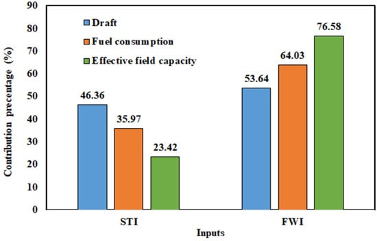 The prediction of tractor-implement unit performance is a major objective for reducing the cost of agricultural production [6]. It is vital to assess the correct combination of a tractor and a farm implement unit to determine the best utilization of available power of a tractor [7]. In addition, as farmers extensively use chisel plows as a tool for primary tillage, gathering performance data for its operation is necessary to decrease the cost of agricultural production and optimize performance [8]. Normally, wheel slip, fuel consumption, draft force, tractive performance, drawbar power, overall energy efficiency, and rate of plowed soil volume are considered to represent performance attributes of a mechanization unit [9,10,11]. Numerous research papers have established practical mathematical equations to predict performance attributes of a tractor-chisel plow unit, to enhance and realize the activities of the main parameters of draft force requirements [12] and fuel consumption [13,14], which are in fact better indicators of the energy requirement for each implement [15].