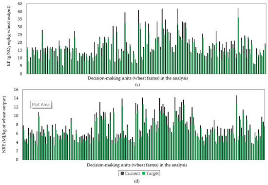 With respect to the improvement in environmental performance, by resorting to operational benchmarking, important insights were obtained. The results confirm that an optimization of resource use must be planned for the wheat production units in Iran if the environmental footprint has to be truncated. This has also been advocated strongly by other researches who have applied the LCA + DEA method to agricultural production systems [59,60,61]. In other words, the crux of the LCA + DEA method is the eco-efficiency concept—Units operating inefficiently must learn from the best practices of the efficient units in the region and adopt those in order to reduce their adverse environmental impacts. It provides clearly communicable quantitative results and target operational and environmental benefits [24,33].