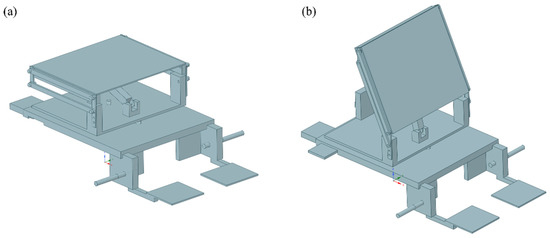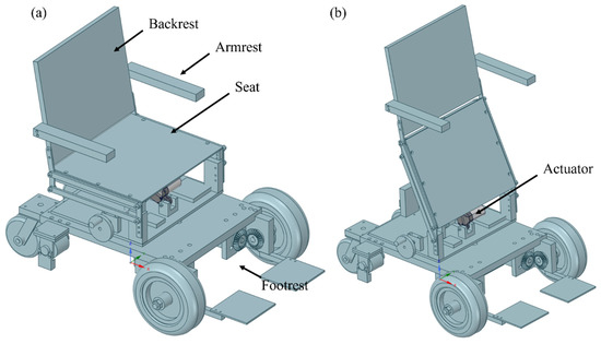 CAD modeling of the personal mobility system (a) driving and (b) standing modes.