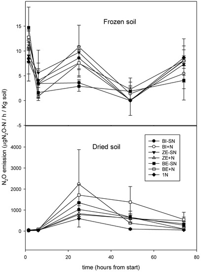 - Teepe, R.; Brumme, R.; Beese, F. Nitrous oxide emissions from soil during freezing and thawing periods. Soil Biol. BioChem. 2001, 33, 1269–1275. [Google Scholar] [CrossRef]