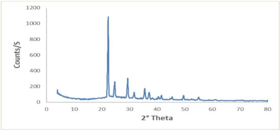 Figure 1 shows the XRD pattern of the prepared CS–urea NC. The presence of chitosan and urea and the absence of impurity phases is evident from the XRD image. The peaks of urea were indexed to the face-centered tetragonal structure, which is in good agreement with the JCPDS card no. 01-083-1436. The characteristic diffraction pattern shows sharp intense and narrow peaks at 22.25°, 29.32°, 24.62°, 35.53°, and 37.12° 2θ angles, corresponding to hkl parameters of (110), (111), (101), (210) and (201), respectively. The results show that the synthesized nanoparticles were urea nanoparticles because the position and relative intensity of all the diffraction peaks of the samples were consistent with the crystalline pattern of urea.
