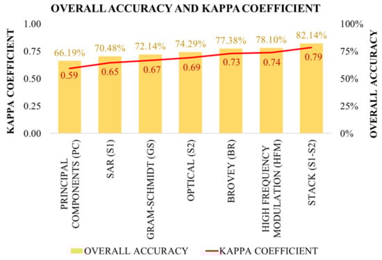 Figure 9 shows the OA and the KC obtained for each image analyzed.