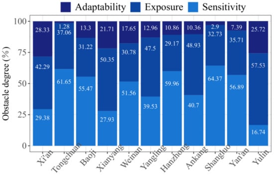 Based on the obstacle degree of every single indicator, we calculate the obstacle degree of every criterion layer to the vulnerability to agricultural high-temperature disaster. The formula is: