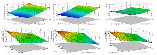 where: Y1 is the maximum cutting force, N; Y2 is the cutting completion degree, %; X1 is the edge angle, °; for X2 is the cutting angle, °; X3 is the load rate, mm·s−1.