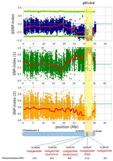 3.2. QTL-Seq Analysis Identified QTL for Blast Resistance in PLD