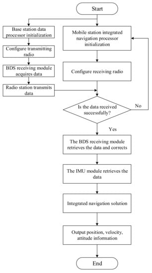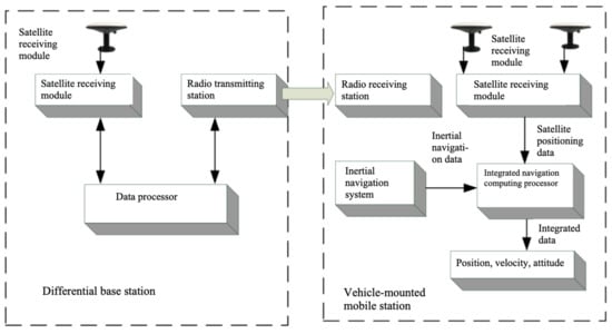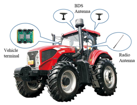 In this case, the Global Navigation Satellite System (GNSS) [10,11], Inertial Navigation System (INS) [12,13,14,15,16,17], laser radar [18], and visual navigation system [19] have been widely used in the positioning and navigation of agricultural machinery. Among them, GNSS is often used in combination with real-time kinematic (RTK) technology [20], and other navigation systems [21,22]. Bakker et al. developed an autonomous field navigation system based on RTK-DGPS (Real-time kinematic Differential Global Positioning System) and tested it on a weeding robot. When driving the robot along a straight path at the speed of 0.3 m/s in the field, its standard deviation, mean value, and minimum and maximum lateral errors were 1.6 cm, 0.1 cm, −4.5 cm, and 3.4 cm, respectively; and the standard deviation, mean value, and minimum and maximum of the heading error were 0.008 rad, 0.000 rad, −0.022 rad, and 0.023 rad, respectively. This indicated that the autonomous navigation of the robot was realized [23]. Masella et al. introduced an RTK-GPS developed by Marconi Company of Canada, which proved through many tests that it could obtain an accuracy of about 20 cm in real time [24]. GNSS is easy to lose signals due to environmental interference while INS is hard to be affected, but the system error of INS accumulates over time. Therefore, the two systems were combined by scholars for research. Kise et al. designed an integrated tractor navigation system with fiber optic gyroscope and RTK-GPS, and the test showed that the error was within 6 cm when driving at the speed of 1.5 m/s [25]. Zhang Meina et al. fused RTK-DGPS and inertial sensor to calculate vehicle heading deviation, and the results showed that the average error of heading deviation was 0.936°, 3.6418°, and 2.7562°, respectively, under three driving conditions: straight line, circular, and arbitrary curves [26]. With the completion and opening of the BeiDou-3 global navigation satellite system [27,28], the performance of the BDS has been further improved. Zhang Yize et al. comprehensively evaluated the system status and global positioning performance of the BDS in terms of single point positioning (SPP) and real-time kinematic (RTK) performance, and the results showed that its positioning accuracy was at the same level as GPS [29]. Pan Lin et al. tested the real-time precision single point positioning performance of BDS, and the results showed that, in static mode, the accuracy of BDS-3/BDS-2 in the east, north, and upward positions were, respectively, 1.8 dm, 1.2 cm, and 2.5 cm, while in motion mode, the corresponding statistics in the three directions were 6.7 cm, 5.1 cm, and 10.4 cm, respectively [30]. Xiong Bin et al. applied BDS to the orchard pesticide applicator and designed an automatic navigation control system of the applicator based on the BeiDou Navigation Satellite System (BDS). The results showed that it could meet the requirements of orchard pesticide application [31]. Wang Jizhong et al. designed a navigation control system of Real Time Kinematic BeiDou Navigation Satellite System (RTK-BDS) based on carrier phase differential technology. The test results showed that the navigation control lateral overshoot was 4.58 cm, the maximum lateral error was within the range of ±4 cm, and the average lateral error was within the range of ±1.5 cm [32]. However, at present, there are few studies on applying the RTK technology to the BeiDou navigation system and integrating it with inertial navigation system to form an integrated navigation system. Moreover, the use of RTK technology often obtains relevant high-precision positioning service by accessing network cors accounts through NTRIP [33,34,35], which generates high costs.