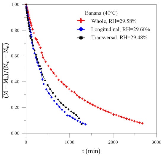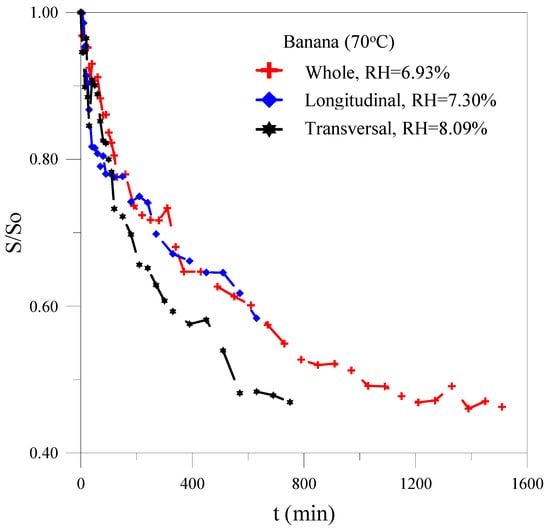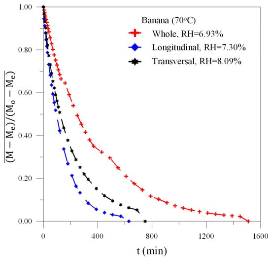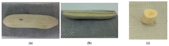 Therefore, due to its importance, several researchers have studied the drying of bananas [,,,,,]. Regarding the product’s shape and their effects on moisture removal, different research studies can be found in the literature [,,].