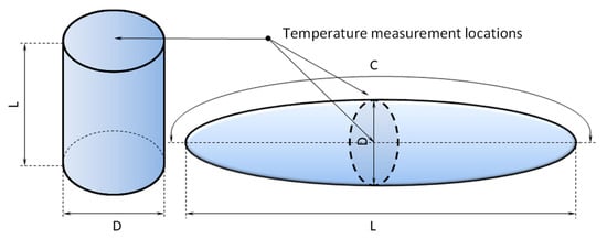 It can be observed that the temperature measurement was made at the sample’s surface, and due to the different height among them, it would be incorrect to compare them. Because of this particular situation, results are presented in a dimensionless form. Thus, they are independent of the initial and final temperature.