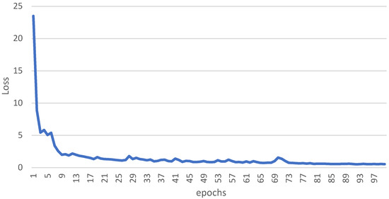The loss curve of the basic training is presented in Figure 8. The epochs of basic training were 100 in the current study.