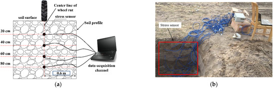 - Lamandé, M.; Schjønning, P. Transmission of Vertical Stress in a Real Soil Profile. Part Ii: Effect of Tyre Size, Inflation Pressure and Wheel Load. Soil Tillage Res. 2011, 114, 71–77. [Google Scholar] [CrossRef]