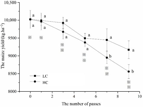 3.3.4. Effects of Soil Compaction on Maize Yield