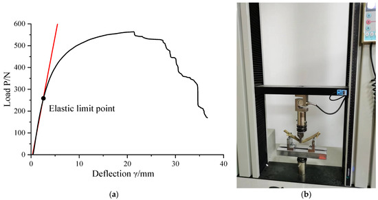Three-point bending test. (a) Load displacement curve; (b) Test photo.