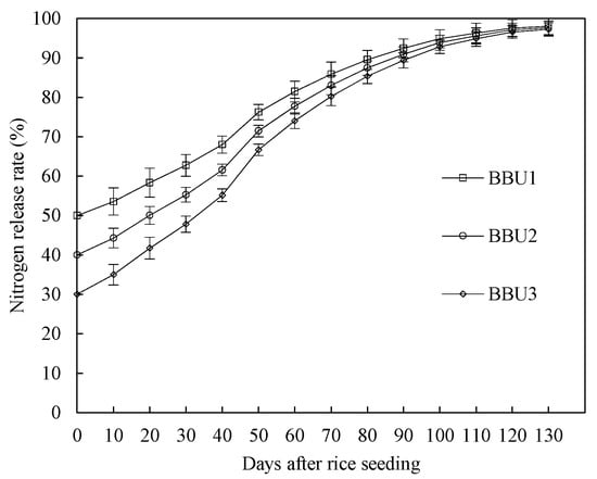 The dynamics of nitrogen release under BBU1, BBU2 and BBU3 treatment.