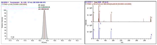 Chromatographic and mass spectra of pyraclostrobin in real samples.