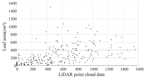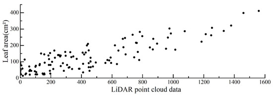 where y is the leaf area value (cm2) and x is the LiDAR point cloud data (points).