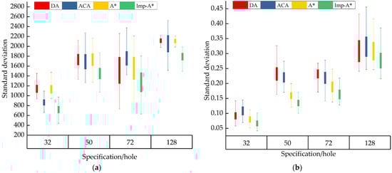 Standard deviation diagram of (a) path planning length and (b) calculation time.