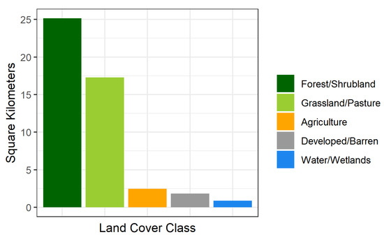 Finally, modeled suitability values were compared with current land use patterns according to the 2020 Cropland Data Layer (CDL) [13]. Landcover classes from the CDL were categorized into five categories: forest/shrubland, grassland/pasture, agriculture, developed/barren, and water/wetlands. Landcover with suitability index values for each landcover type was compared to assess how well current patterns of agricultural land use aligned with the modeled suitability values.