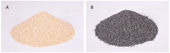 Color of opium poppy seeds may vary from white-yellowish to dark blue. An example is shown for white seeds (A) from cultivar ‘Weiss’ and for grey seeds (B) from cultivar ‘Minoan’ (Photo: Zámboriné Németh, É.).