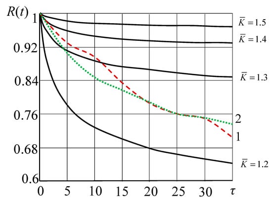 Figure 2 shows the curves of the probability of failure-free operation depending on the dimensionless operating time: