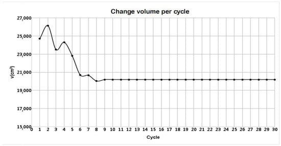 For cross-section optimization, it is necessary to determine the final optimal cross-section. The sum of the volumes when repeated times and the sum difference of the volume for times converge in a range of constant were set as the optimal cross-section (Equation (9)). Figure 5 summarizes the design process of the numerical model to perform this process: